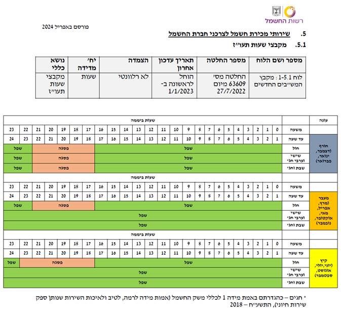 נכון לאפריל 2024, נלקח מספר לוחות התעריפים של רשות החשמל, יש להתעדכן באתר רשות החשמל מתקופה לתקופה.